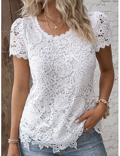 Per donna Top in pizzo Pizzo Patchwork Semplice Elegante Classico Casual Senza Maniche Girocollo Top Regolari Quotidiano Uscire Weekend Bianco Estate Primavera