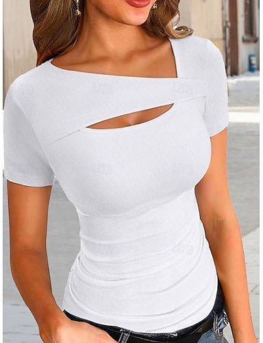 Per donna Maglietta Foro Semplice Classico Casual Manica Corta Girocollo Top Regolari Quotidiano Uscire Weekend Nero Bianco Rosa Vino Grigio scuro Estate Primavera