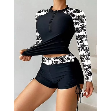 Per donna Costume da Bagno Rash Guard Costume da bagno Floreale Stampato 2 Pezzi Cerniera Frontale Asciugatura Rapida Leggero Traspirante Manica Lunga Costume da Bagno Costume da bagno Surf Spiaggia