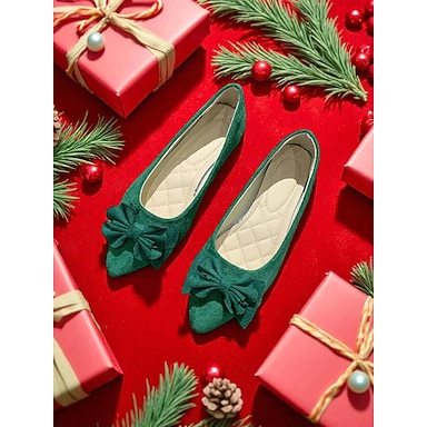 ballerine da donna con fiocco in elegante stile natalizio, perfette per outfit da festa e riunioni festive