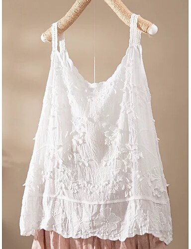 Per donna Blusa Top in pizzo Finto cotone e lino Pizzo Semplice Casual Senza Maniche Girocollo Top Regolari Quotidiano Ferie Uscire Cachi Estate Primavera
