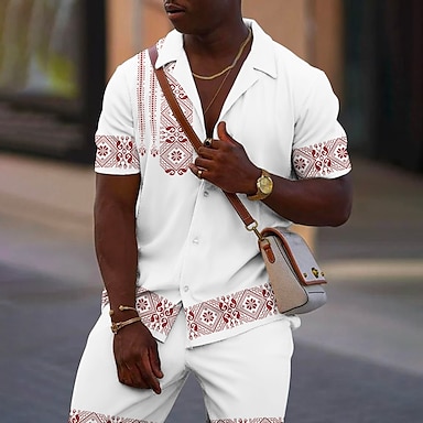 Per uomo Vintage Geometria Etnico 2 pezzi Set di camicie Camicia hawaiana estiva Manica Corta Pantaloni corti Collo ripiegato Moda Streetwear Designer All'aperto Streetwear Quotidiano Stampato Estate