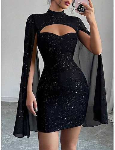 Sirena Tromba Lunghezza al pavimento Abiti da Ballo Abito da Sera Da principessa Abito formale Scintillante Abito Nero Ritaglio Manica Lunga Scollo Illusione Formale Con Paillettes con Glitter