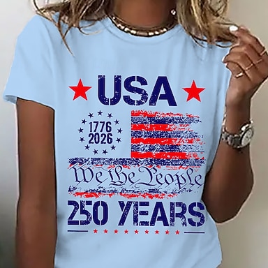 Giorno dell'Indipendenza Anniversary Americano Maglietta Patriottica da Donna Stampa Grafica Bandiera Lettera Elegante Classica Casual Manica Corta Collo Tondo Top Lunghi Giornalieri Blu Nero Bianco