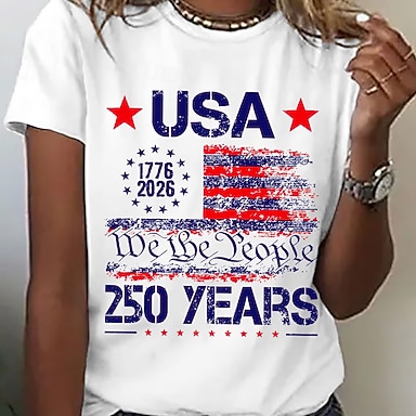 Giorno dell'Indipendenza Americana Per donna Maglietta Stampato Grafico Bandiera Elegante Classico Casual Manica Corta Girocollo Top Regolari Casuale Quotidiano Bianco Estate Primavera