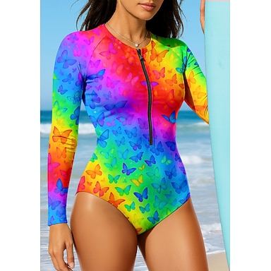 Per donna Costume da Bagno Rash Guard Stampato Cerniera Frontale Protezione Solare UV UPF50+ Asciugatura Rapida Manica Lunga Body costume da bagno Surf Spiaggia Sport Acquatici Estate