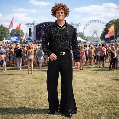 Per uomo Retrò vintage Hippie Anni '70 Set di accessori per costumi Top o camicia Parrucche Cosplay per Halloween Mascherata