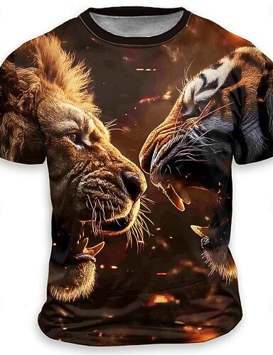 Per uomo Animale Tigre Maglietta maglietta Stampa 3D Girocollo Camicia Moda Athleisure Streetwear Sport all'Aperto Nero 1 Nero 3 Nero 2 Estate Primavera Abbigliamento S M L XL XXL XXXL