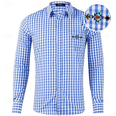 Oktoberfest Quadri Camicia in pelle di daino Bavarese Tedesco Prati Per uomo Carnevale Festa della birra Panno in stile tradizionale Camicia