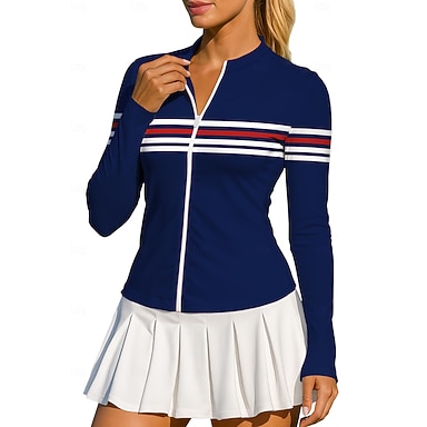 Per donna Geometrico A righe Top Maglietta sportiva Maglia da tennis Maglietta da tennis Manica Lunga Cerniera Floreale UPF50+ Resistente ai Raggi UV Alta elasticità Traspirante Pallavolo Tennis Golf
