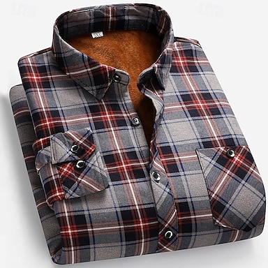 Per uomo Camicie Camicia a quadri Camicia con colletto Camicia in pile Camicia con bottoni Sovracamicia A quadri Matrimonio Feste A B C D Manica lunga Squadrata Inverno Abbigliamento Caldo