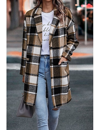 Per donna Cappotto Invernale Giacca Invernale Confortevole Traspirante Tasca Bottoni Stampato Casual Plaid Formale Vacanza Streetwear Casuale Monopetto Lungo Collo ripiegato Vestibilità regolare