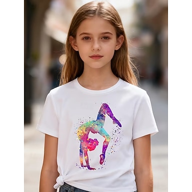 Ragazze 3D Grafico Maglietta Manica Corta Stampa 3D Estate Primavera Sport Moda Streetwear Bambini 4-12 Anni Girocollo Casuale Quotidiano All'aperto Vestibilità regolare