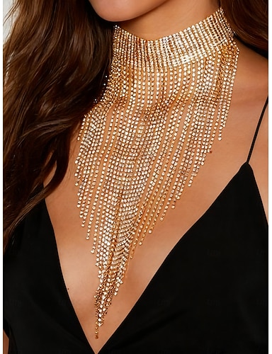 collana girocollo con frange in strass dorati da donna: gioielli di lusso per cocktail party, eventi serali e occasioni formali