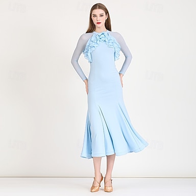 Balli da Sala Vestito Pieghe Volant Giunzione Per donna Feste Allenamento Performance Manica Lunga Spandex Nylon