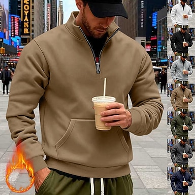 Per uomo Maglia Felpa in pile Maglione Felpa con zip corta Nero Bianco Verde militare Blu marino Cammello Colletto Mao Semplice Tasca a marsupio Sport & Outdoor Casuale Quotidiano Streetwear Cool