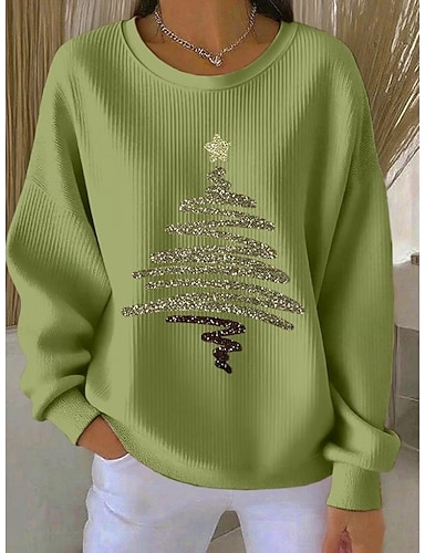 Maglione pullover per donne a Natale grafica casual maniche lunghe collo a giro top regolari abbigliamento quotidiano casual nero bianco verde chiaro rosso autunno inverno