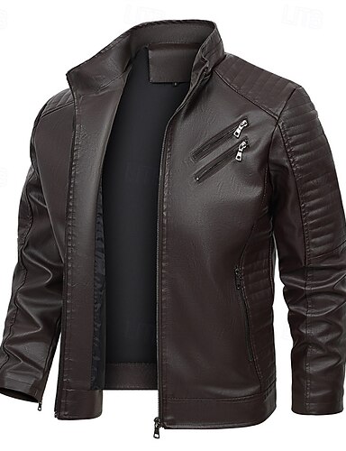 Per uomo Giacca di pelle sintetica Giacca da motociclista Giacca da moto Tenere al caldo Anti-pioggia Giacca Capispalla Nero Marrone