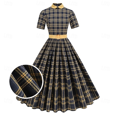 Retrò Vintage Anni 1950 Hepburn Vestito Vestito Svasato Griglia / Plaid Costume Per donna Mascherata Evento / Festa Addio al Nubilato Festival Adulti Vestito Abiti per il ritorno