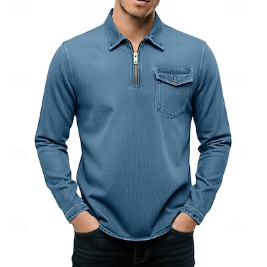 Per uomo Polo con zip Camicia 100% cotone lavaggio acido Casuale Abbigliamento quotidiano Zip a un quarto Manica Corta Moda Essenziale Semplice Jeans Tasca angosciato Estate Primavera Primavera