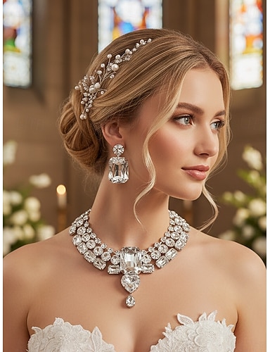 I monili nuziali 2 pezzi Strass 1 collana Orecchini Per donna stile sveglio Personalizzato Moda Classico Prezioso Irregolare Parure di gioielli Per Natale Strada Carnevale