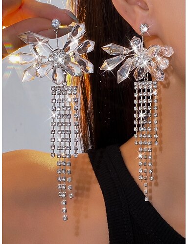 Per donna Orecchini a perno Frangia con nappe Prezioso A petalo Elegante Moda Personalizzato Diamanti d'imitazione Orecchini Gioielli Argento Per Matrimonio Feste Quotidiano 1 Paio
