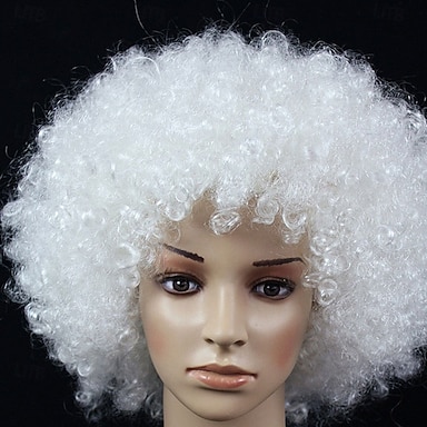 Parrucca di Carnevale 2026 Bianco Riccio Afro Corto Parrucca sintetica da festival Martedì grasso Parata Capelli per costumi da cosplay per Da uomo