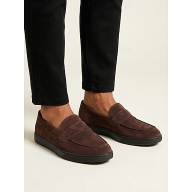 mocassini da uomo in pelle scamosciata marrone, elegante design slip-on con suola spessa, perfetti per matrimoni in giardino, eventi formali all'aperto e celebrazioni eleganti