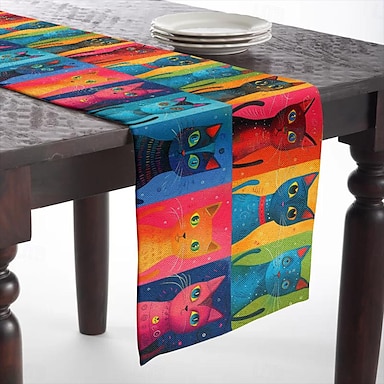 Runner da tavolo con stampa di animali e gatti, decorazioni per il tavolo da pranzo della cucina, runner da tavolo con decorazioni stampate per interni ed esterni, casa, agriturismo, vacanze,