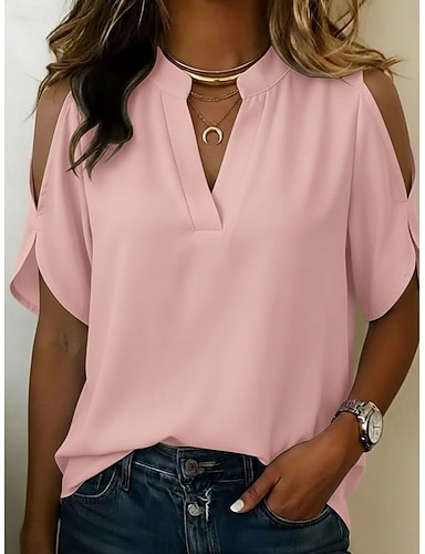 Per donna Camicia Top con spalle scoperte Blusa Top in chiffon Tinta unica Semplice Elegante Vacanza Manica Corta Scollo a V Top lunghi Casuale Nero Bianco Rosa Rosso Blu marino Estate