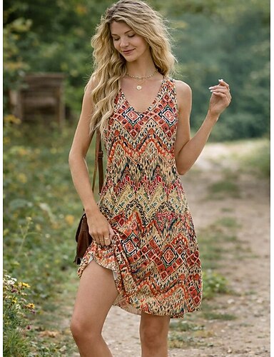 Per donna Mini Abito Abito a trapezio Abito Sottoveste Vacanza Casual All'aperto Uscire Vestibilità regolare Floreale Grafico Blocco di colori Senza Maniche Scollo a V Blu azzurro cielo blu navy