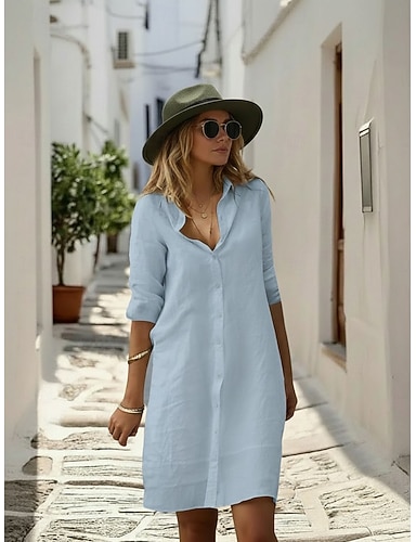 Per donna Mini Abito Abito Bianco Abito da Spiaggia Abito Camicia Copricostume Elegante Moda Classico Quotidiano All'aperto Spiaggia Vestibilità comoda Semplice Manica Lunga Colletto a Camicia Bianco