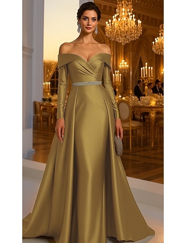 Per donna Abito da smoking Linea ad A Formale Ospite di nozze Raso Elegante Semplice Manica Lunga Lunghezza al pavimento Risvolto a punta