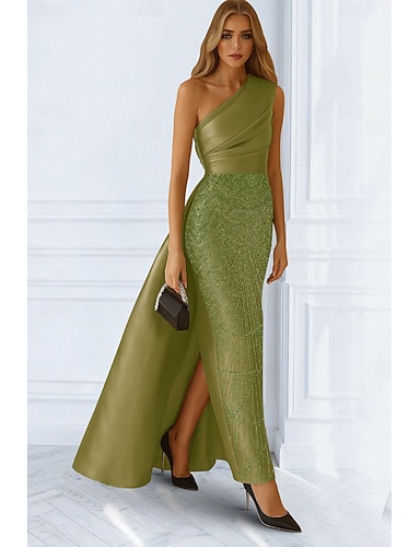Sirena Tromba Lunghezza al pavimento Perline ricamate Abito Formale Abito da madre della sposa Abito da Sera Abito da ballo con sopragonna Abito formale Elegante Scintillante Senza Maniche Monospalla