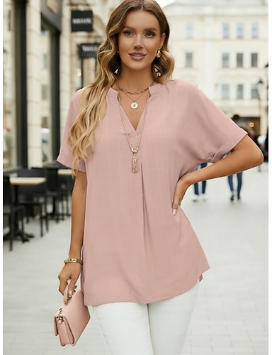 Per donna Camicia Blusa con texture Maglietta traforata Blusa Semplice Attivo Elegante Manica Corta Scollo a V Top Regolari Casuale Quotidiano All'aperto Bianco Rosa Cachi Nero Estate Primavera