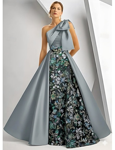Tute Lunghezza al pavimento Abito sopragonna Abito da cerimonia per signora Senza Maniche Monospalla Elegante Minimalista Formale Ospite di nozze Raso con Fiocco/Fiocchi