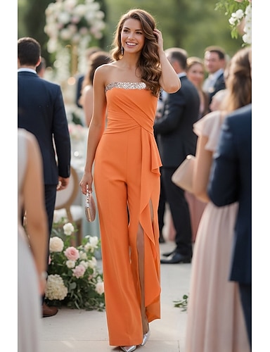 Tute Lunghezza al pavimento Tuta Abito da cerimonia per signora Senza Maniche Senza Spalline Elegante Semplice Formale Ospite di nozze Riunione di famiglia Chiffon Elasticizzato con Arricciato
