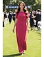 Tubino Colonna Lunghezza al pavimento Abito Formale Abito da cerimonia per signora Manica Corta Girocollo Elegante Semplice Formale Ospite di nozze Ricevimento di matrimonio Crepe Elasticizzato con