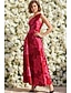 Linea ad A Lunghezza Tè Abito Formale Abito da cerimonia per signora Manica Corta Scollo a V Scollo Tondo Elegante Vintage Con Stola Formale Crepe Elasticizzato con Stampa floreale Fiocco/Fiocchi