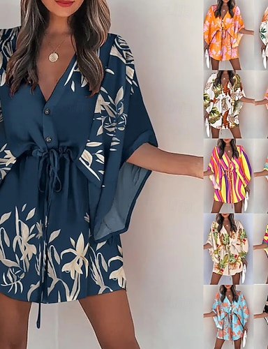 Per donna Mini abito Vestito Casual Abito a trapezio Moda Moderno Quotidiano Spiaggia Vacanza Vestibilità comoda Floreale Tropicale Manica 3/4 Scollo a V Blu Giallo Rosa Blu marino Estate Primavera