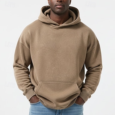 Per uomo Felpa con cappuccio Felpa con cappuccio in pile Nero Marrone Grigio Con cappuccio Liscio Tasche Sportivo Giornaliero Per eventi Streetwear Fantastico Informale Inverno Primavera & Autunno