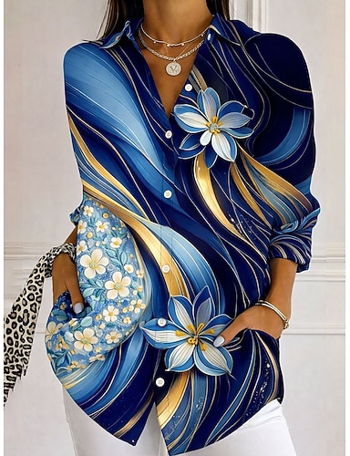 Per donna Camicia Bottoni Stampato Ombre Floreale Grafico Elegante Vintage Moderno Manica Lunga Colletto a Camicia Top Regolari Quotidiano Lavoro Blu Nero Viola Arancione Primavera Autunno Inverno