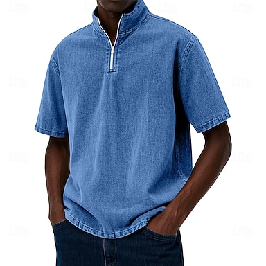Per uomo Polo Camicia lavata con acido Casuale Ferie Collo ripiegato Zip a un quarto Manica Corta Moda Essenziale Tinta unica Cerniera Stile Vintage Estate Primavera Blu Verde scuro Nero Rosso Blu