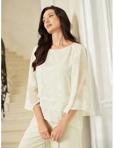 Per donna Tunica Blusa Top in pizzo Pizzo Orlo asimmetrico Floreale Elegante Manica 3/4 Manica a Campana Girocollo Top Regolari Quotidiano Ospite di nozze Beige Estate Primavera Autunno