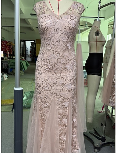 Abito da ospite di matrimonio a lunghezza terra A-Line Abiti formali Abito da sera Abito per la madre della sposa Maniche corte Collo a V Elegante Vintage Lusso con Paillettes