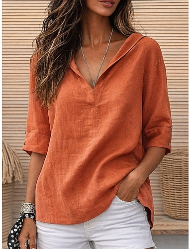 Per donna Blusa Camicia in finto lino Semplice Elegante Casual Manica 3/4 Scollo a V Top Regolari Quotidiano Blu Nero Bianco Giallo Arancione Estate Primavera Autunno