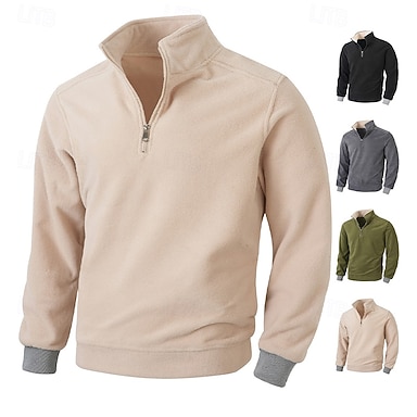 Per uomo Maglia Felpa in pile Felpa con zip corta Nero Blu marino Cachi Grigio chiaro Grigio scuro Colletto Mao Semplice Sport & Outdoor Quotidiano Ferie Poliestere Streetwear Essenziale Casual