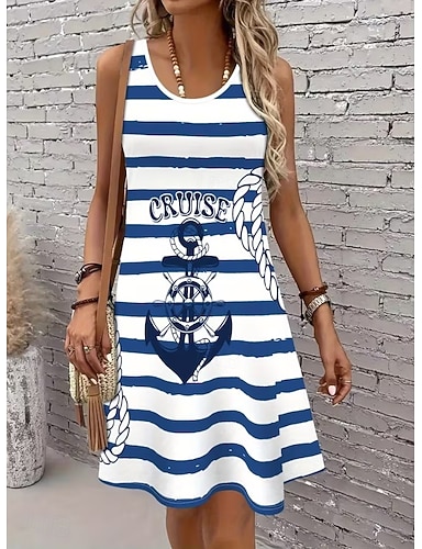 Per donna Abito al ginocchio Vestito Estivo Abito a trapezio Abito a spalle scoperte Vacanza Casual Boho Spiaggia Ferie Vestibilità regolare Grafico Geometrico A righe Senza Maniche Girocollo Scollo