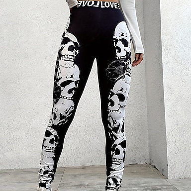 Leggings da donna vacanza moda vintage lunghezza intera vita alta grafica teschio