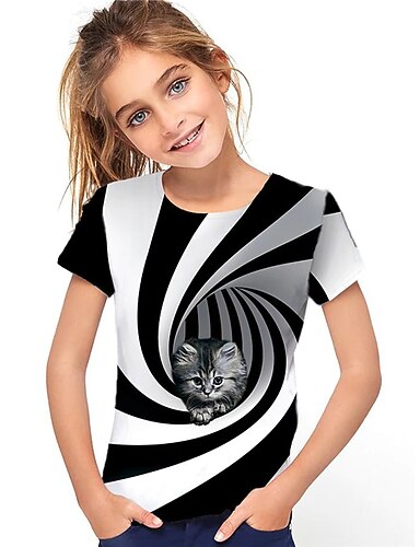 Da ragazza 3D Animali Gatto maglietta Manica corta Stampa 3D Estate Primavera Attivo Di tendenza stile sveglio Bambino 3-12 anni Esterno Giornaliero Al coperto Standard